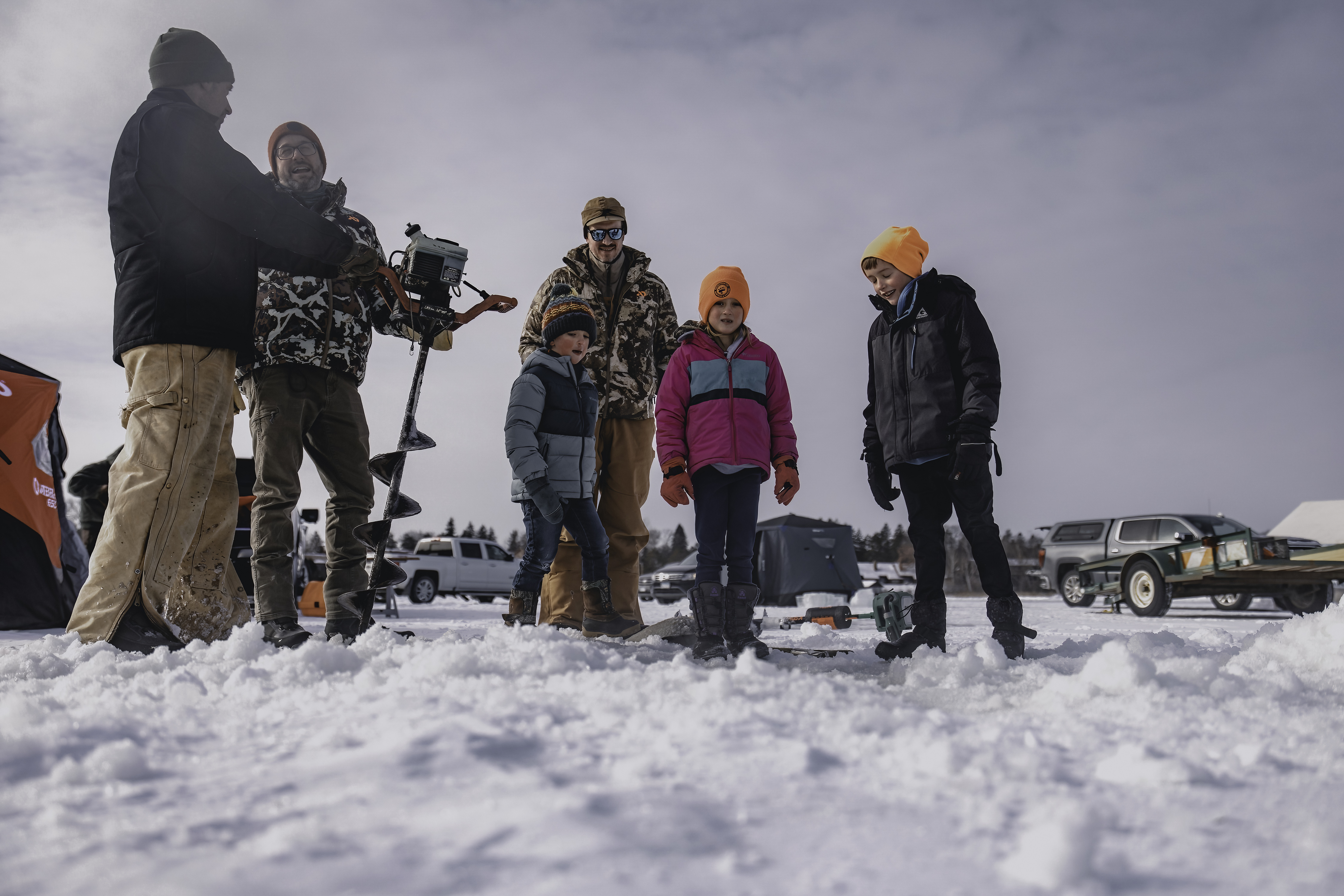 Saturday’s activities kicked off at 10 a.m. with an ice spearing demonstration by Hjelle-Arc Spears. Attendees then had the opportunity to try spearing at six spear houses, fish from ten portable houses provided by the Minnesota DNR, and warm up in two heated Ice Castle houses courtesy of Pelican Lake Fish House Rentals and Guide Service. Despite the biting -25°F temperatures, the spirit of the event remained strong.